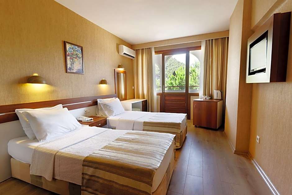 Accommodation options span Standard Rooms with sea or partial sea views, rooms with balconies, and suites with sea views. Each stay pairs air conditioning with practical touches like free toiletries and bathtubs, ensuring a comfortable retreat after a day spent exploring İçmeler.