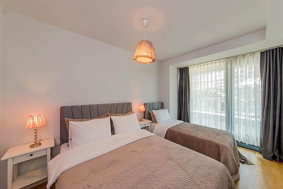 This apartment features a sauna. Boasting a private entrance, this air-conditioned apartment features 1 living room, 2 separate bedrooms and 1 bathroom with a walk-in shower and a bidet. In the well-equipped kitchen, guests will find a stovetop, a refrigerator, a dishwasher and kitchenware. The spacious apartment features a washing machine, soundproof walls, a mini-bar, a flat-screen TV with cable channels, as well as city views. The unit has 5 beds.