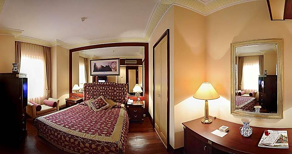 Exclusive suite featuring a spacious seating area fitted with traditional rugs.