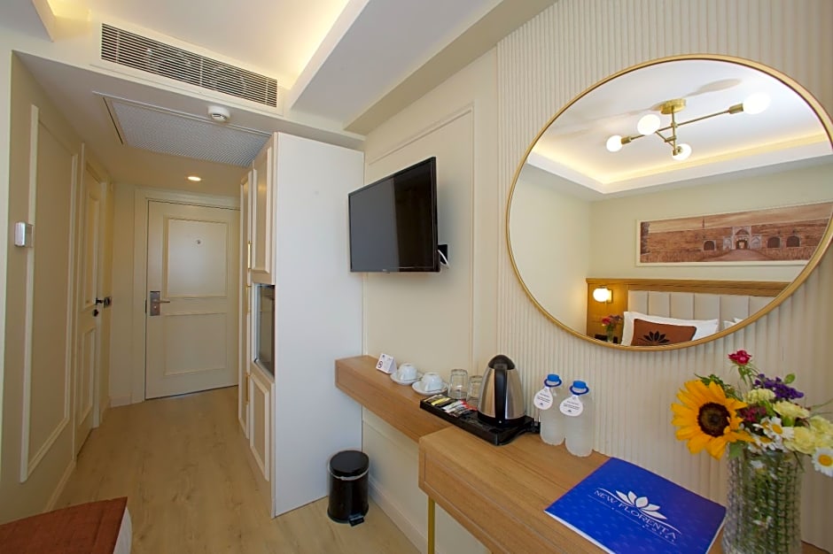 Welcome to New Florenta Hotel, located in the heart of Istanbul, Turkey. This unique hotel offers a vibrant and comfortable stay, with a minimum price starting from $79. The address of the hotel is Mola Fenari Mh. Selvili Mescid Sk. No 16 Sultanahmet, just 1.2mi away from the city center.