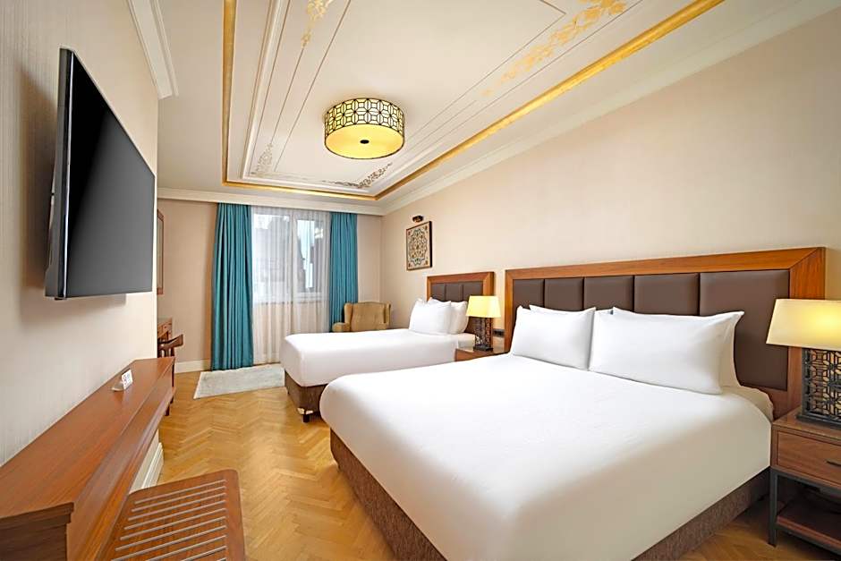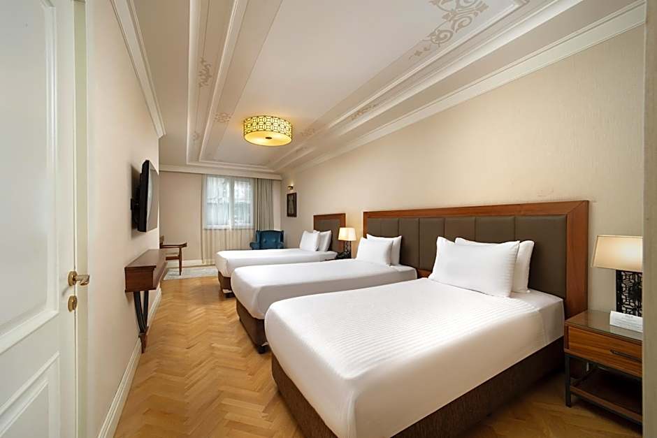 É um hotel 4 estrelas em Istambul, Turquia, situado na vibrante área de Taksim. Endereço: Topcu Caddesi No:10 Taksim. As comodidades em destaque incluem pacotes de spa/bem‑estar, restaurante, piscina ao ar livre (gratuita), Wi-Fi (gratuito), banho turco/banho a vapor (gratuito), sala de vapor, sauna (gratuita), ar-condicionado, bar, terraço, jardim, recepção 24 horas, quartos para não fumantes, acessível a cadeiras de rodas, elevador, artigos de higiene gratuitos e vista.