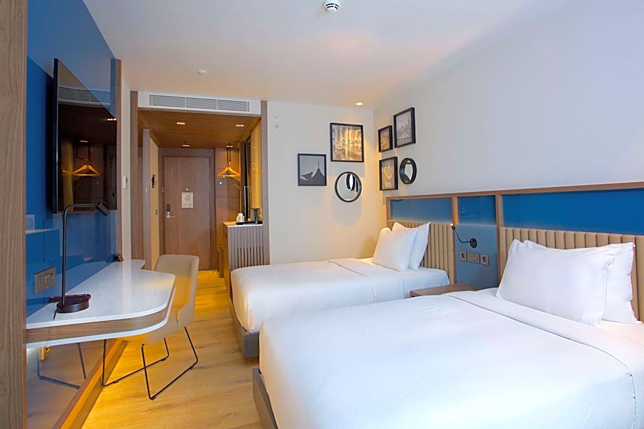 At Hampton By Hilton Istanbul Old City, the hotel offers Twin Rooms with two twin beds, Queen Rooms with a queen-size bed, King Rooms with a king-size bed and a sofa bed, and King Rooms with a king-size bed, a sofa bed, and a terrace. All rooms accommodate 2 adults and 1 child, except for the King Rooms which can accommodate 3 adults and 2 children. Smoking is not allowed in any of the rooms.