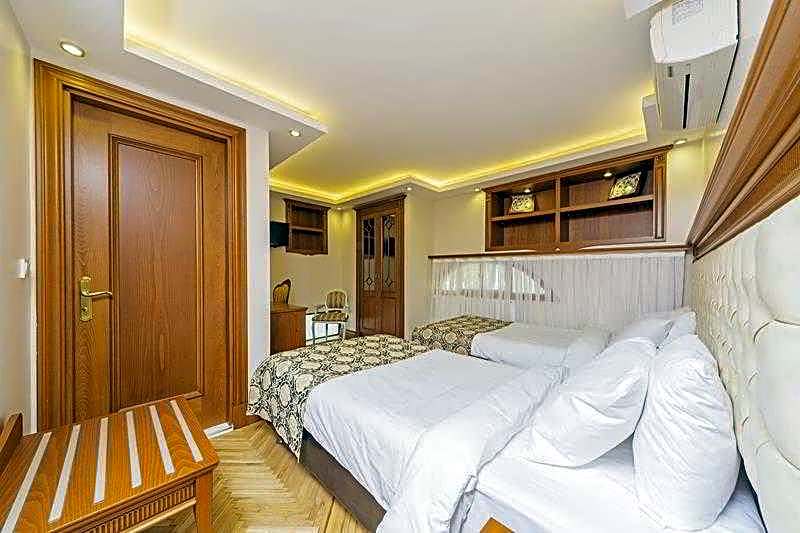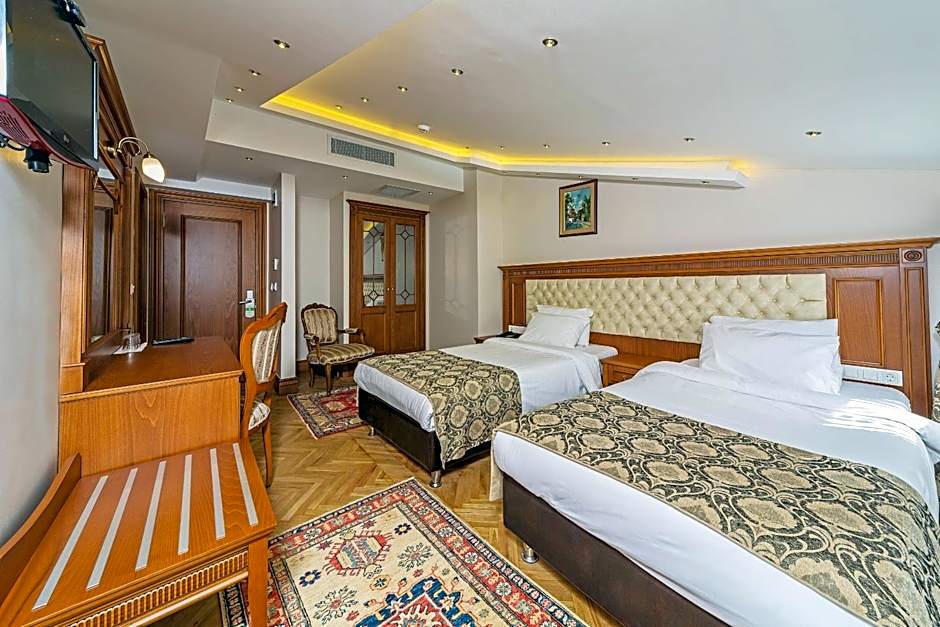 This elegant room is air-conditioned and decorated with traditional carpets. It also offers beautiful views of Sultanahmet Square and The Blue Mosque.