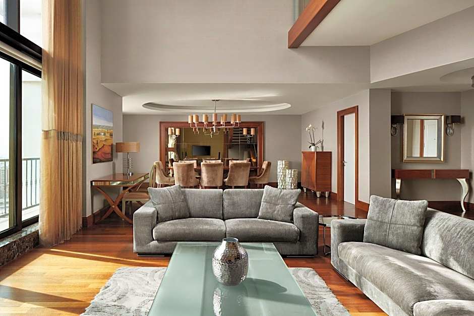 This suite features a spacious living area and a separate bedroom which are luxuriously designed. It also has a sophisticated bathroom with two washbasins and a spa bath overlooking the city and some offers sea views.