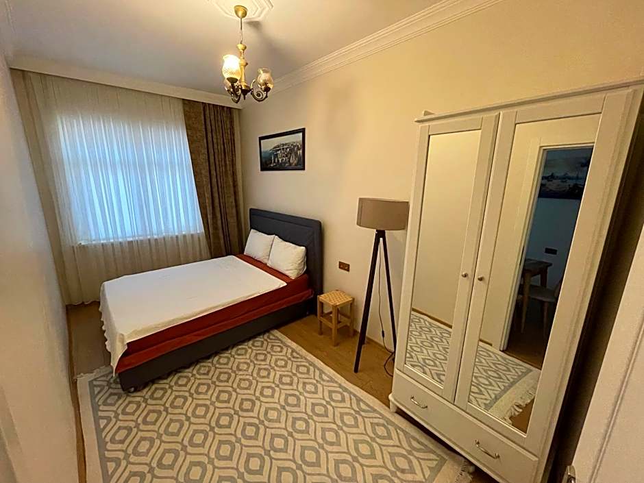 is a 3-star apartment in Istanbul, Turkey. Address: Kucukayasofya Mahallesi, Yusuf Aşkın Sokak No 15, roughly from the city center. A well-equipped setup includes a private entrance, a kitchen and kitchenette, air conditioning, a sun deck and terrace, a balcony with garden and landmark views, and complimentary Wi-Fi for easy stays.