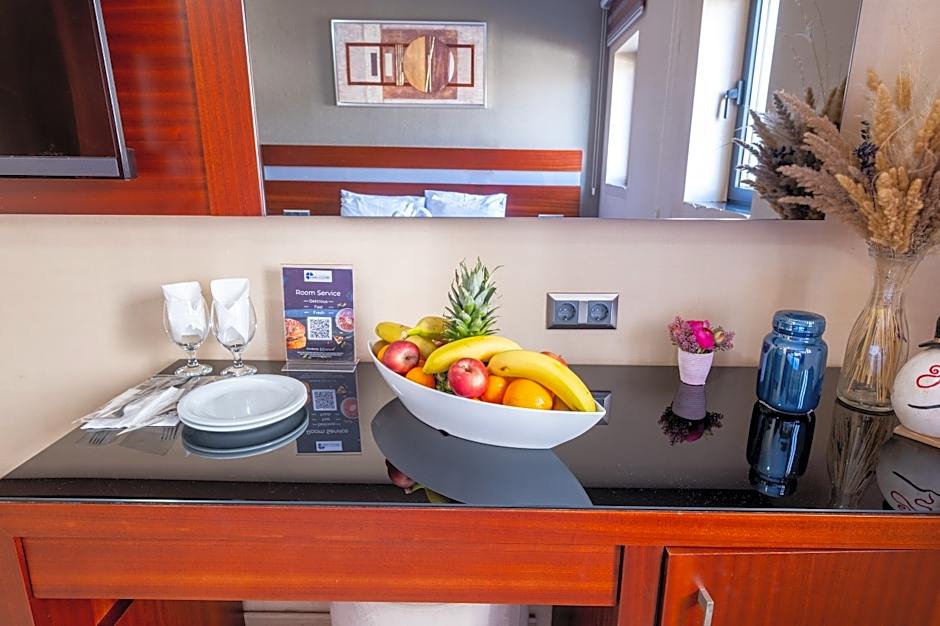The double room's kitchenette, which features an electric kettle, is available for cooking and storing food. The spacious double room offers air conditioning, soundproof walls, a terrace with city views as well as a private bathroom featuring a shower. The unit offers 1 bed.