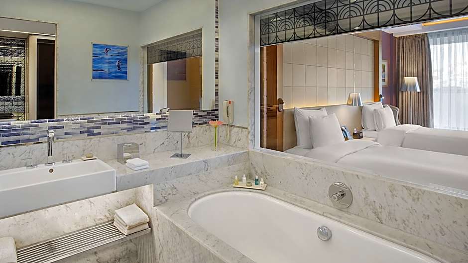 Overlooking to Marina, this deluxe room has a private balcony with marina view. It features state-of-art technology LCD TV with satellite channels, curtain controls, electronic safety box and refrigerated private bar. Guests can find thr bathroom with separate marble bathtub and shower with internal glass window panel, hairdryer and special toiletries. Ergonomic desk chair, discreet business desk and one rollaway bed are available in the room. Turndown service is also available for guests.
