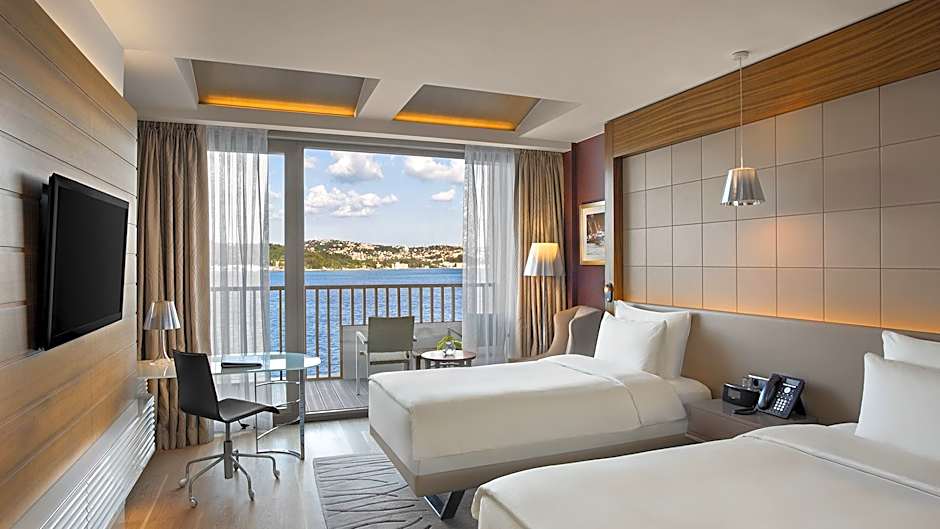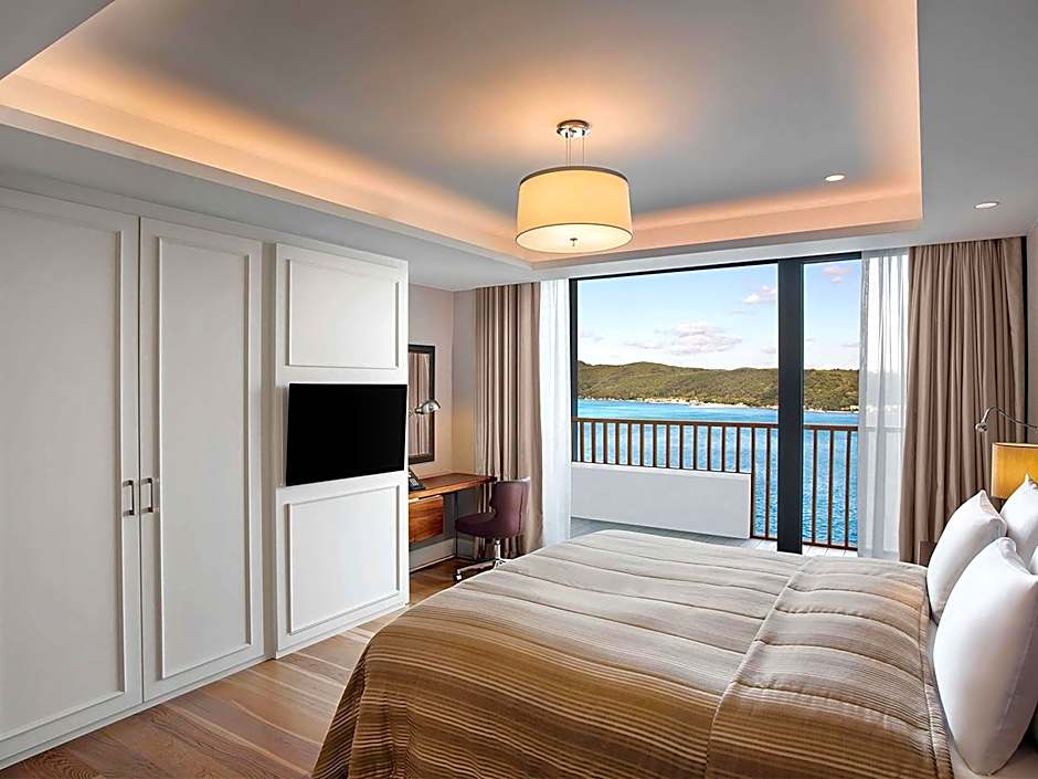 Overlooking to Bosphorus, this tastefully decorated spacious room has a private balcony with sea view. It features multi-channel satellite TV, curtain controls, electronic safety box and refrigerated private bar. Guests can find uniquely furnished bathroom with separate marble bathtub and shower with internal glass window panel, hairdryer and special toiletries. Ergonomic desk chair, discreet business desk and one rollaway bed are available in the room. Tea&coffee facilities can be provided upon request.Turndown service is also available for guests.
