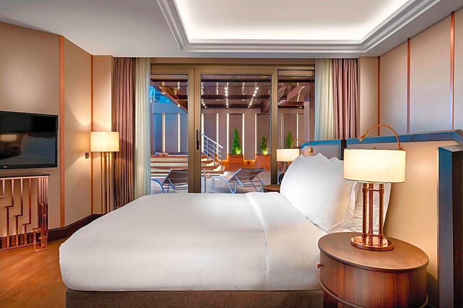 Featuring scenic city views from large windows which maximize natural light and panoramas, this double room also offers Turkish-inspired style and décor throughout. The full marble bathroom comes with separate rain shower and soaking bathtub. Guests can enjoy exclusive Asprey bath amenities and plush terry cloth bathrobes and slippers. This room also has: - Exclusive Club Level access for guests (Food and beverage service five times a day, Concierge services, Express check-in and check-out) - 20% discount on spa treatments - %20 discount for all Laundry Services- 32-inch flat-screen IP TV - In-room coffee with a Nespresso machine - In-room safe for your personal use - Fully stocked mini-refreshment bar - Complimentary overnight shoeshine - Housekeeping attention twice daily.