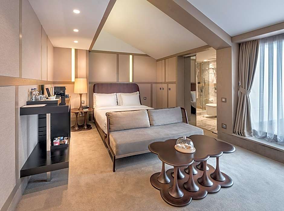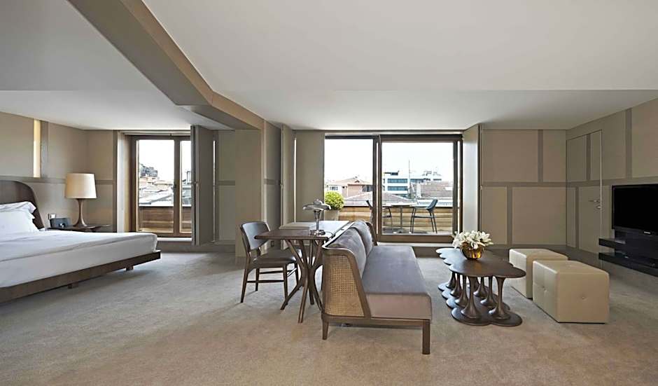 A spacious design room with king-size bed, marble bathroom, oversize walk-in closet, air conditioning, free WiFi internet access, a mini bar and free coffee/tea facillities. Features a 33 ft² private terrace. Accessible by climbing 1 flight of stairs.