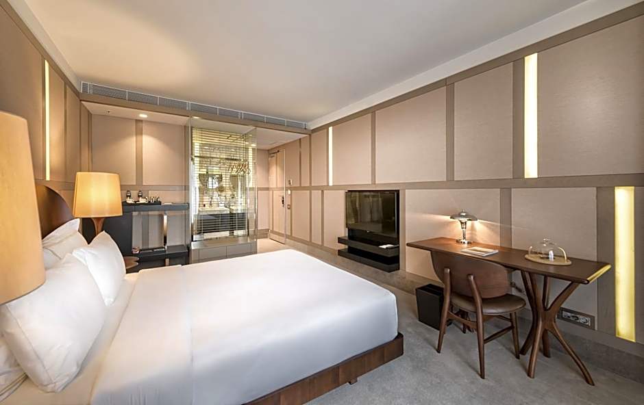 A 115 ft² design room, with king-size bed, marble bathroom, oversize walk-in closet, air conditioning, free WiFi internet access, a mini bar and free coffee/tea facilities.