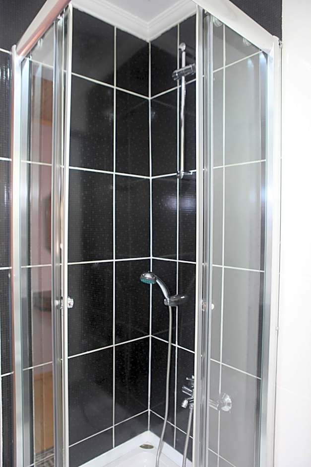 Air-conditioned room with a flat-screen TV, and bathroom with shower. This triple studio flat features a kitchenware, tile/marble floor and electric kettle.