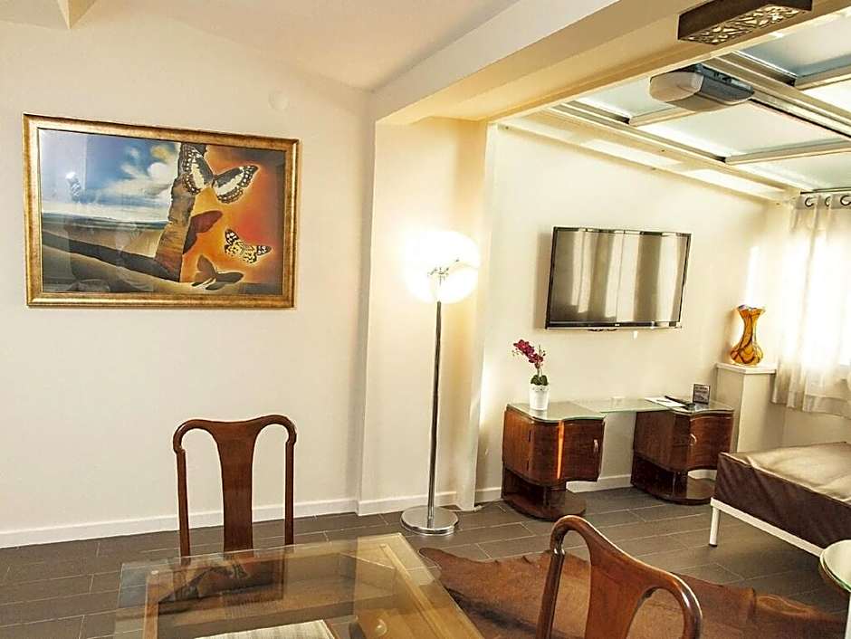 This room offers a private spacious terrace. It is equipped with an air conditioning and central heating, Led TV with satellite channels, free high-speed internet, laptop size safety box, wardrobe. Also it features a kitchenette with fridge, electrical stove, compact dishwasher, kettle and kitchenware. The modern private bathroom comes with a hair dryer, free toiletries and slippers. Upper floors are accessible by elevator. Please note that extra beds are not available in this room type. Breakfast will be served in the main building.