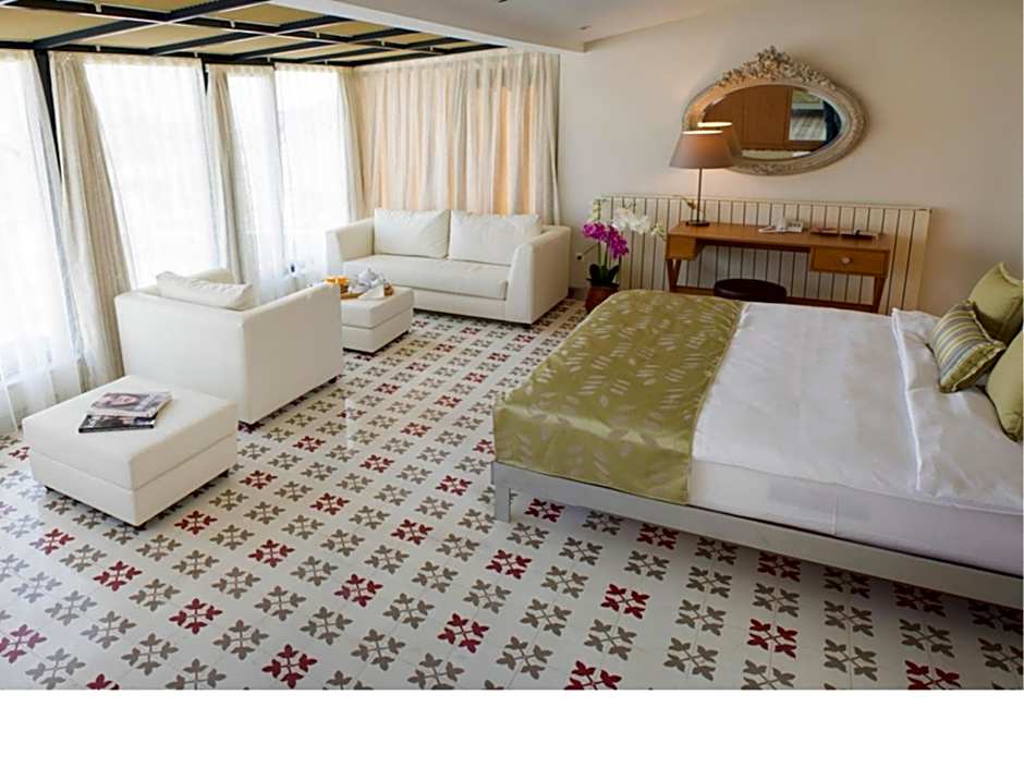 This room comes with a work station for business needs. All deluxe rooms have a work station for guests traveling for business. Rooms have street or garden views. All deluxe rooms have relaxing baths with rain shower, soft towels, comfortable beds, high end textiles, daylight preventing curtains, heating and air conditioning units, LCD televisions with satellite TV, music stations, high speed wireless internet, telephones with message warning, electromagnetic door locks, safety box, full length mirrors, hairdryer, slippers, personal care and hygiene kits. Deluxe rooms are available either as queen bed or two single beds. They each also have a single sofa bed.