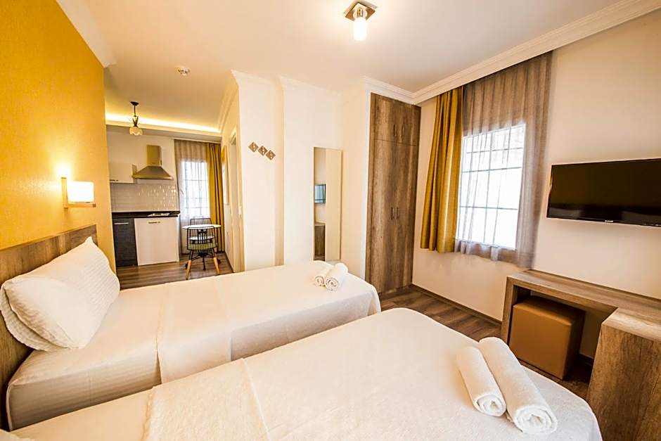 Guests can enjoy a range of amenities including free WiFi, air conditioning, a 24-hour front desk, kitchen facilities, and room service. With a garden, terrace, and balcony, guests can unwind and enjoy the beautiful views. Whether you're looking for a relaxing getaway or a convenient stay close to the city center, Dekatria Rooms&Aparts is the perfect choice for your next adventure in Kaş.