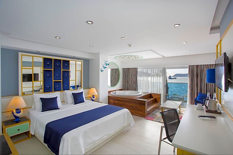 This suite's special feature is the hot tub. This suite consists of 1 living room, 1 separate bedroom, and 1 bathroom with a bath and free toiletries. The air-conditioned suite provides a flat-screen TV with satellite channels, soundproof walls, a mini-bar, a seating area, as well as sea views. The unit offers 2 beds.