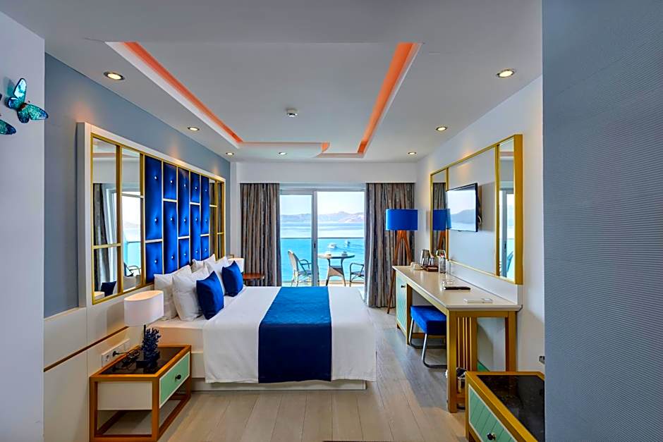 This room features a balcony with sea views and a mini-bar.