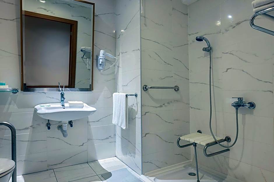 The spacious double room provides air conditioning, a mini-bar, as well as a private bathroom featuring a shower and a hairdryer. Boasting a balcony, this double room also features a wardrobe, a safe deposit box and a flat-screen TV with satellite channels. The unit offers 1 bed.