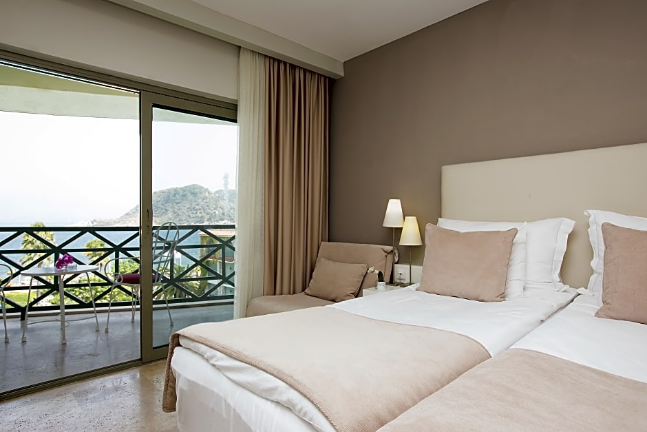 Indulge in the ultimate grown-up getaway with a stay at Marti La Perla, where every detail is tailored to ensure a memorable retreat. From the elegant rooms with private balconies to the lush gardens and sun deck, this resort exudes sophistication at every turn. Whether soaking up the sun on the beach, enjoying live music, or savoring delectable meals at the in-house restaurant, this hotel promises an unforgettable stay in Marmaris.