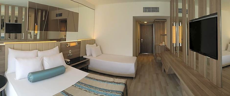 The Turunc Premium Hotel offers a variety of room types including standard rooms, suites, and family rooms. Standard rooms have a maximum occupancy of 2 guests, while suites and family rooms can accommodate up to 4 guests. Smoking is not allowed in any of the rooms. Bed sizes include either a king bed or twin beds, and room sizes range from standard size to larger suites.