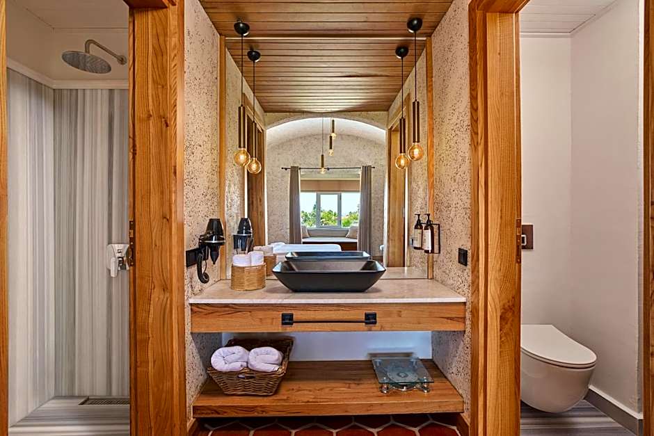 This double room's special features are the pool with a view and the hot tub. Providing free toiletries and bathrobes, this double room includes a private bathroom with a bath, a shower and a hairdryer. The spacious air-conditioned double room provides a flat-screen TV with streaming services, a private entrance, soundproof walls, a mini-bar as well as sea views. The unit offers 1 bed.