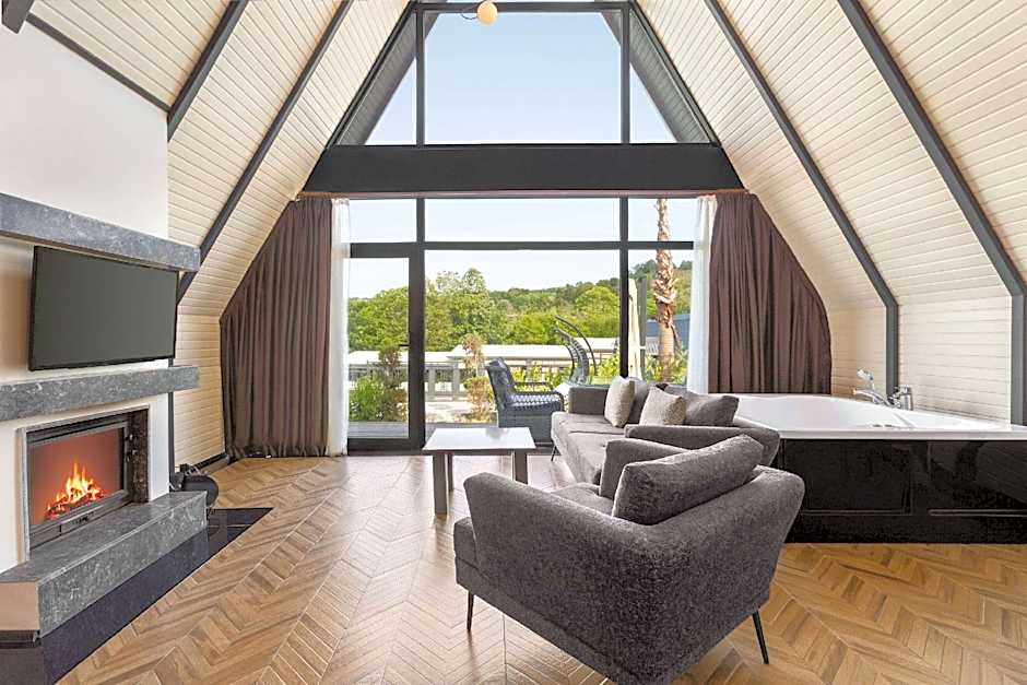 This quadruple room's special features are the hot tub and the fireplace. Providing free toiletries and bathrobes, this quadruple room includes a private bathroom with a bath, a shower and a hairdryer. The spacious air-conditioned quadruple room provides a flat-screen TV with satellite channels, a private entrance, soundproof walls, a mini-bar as well as garden views. The unit offers 1 bed.