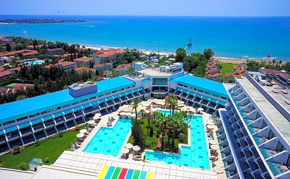 Side Star Elegance Hotel - Ultra All Inclusive is a five-star resort in Side, Turkey, blending beachfront bliss with an ultra all-inclusive experience. On-site highlights include a free water park, a waterslide, a private beach area, and a free Kids' Club with a complimentary kids' pool, plus live music performances to brighten evenings.