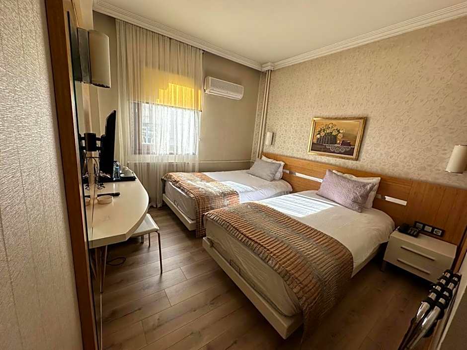 At Sultan Hotel, the Deluxe Double Room is available for guests. This room type can accommodate 2 adults and 1 child, with a double bed and two twin beds. Smoking is not allowed in this 194 sqft room.