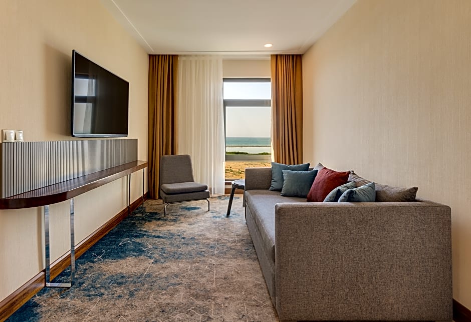 The spacious air-conditioned suite offers a flat-screen TV with cable channels, soundproof walls, a mini-bar, a tea and coffee maker as well as sea views. The unit offers 1 bed.