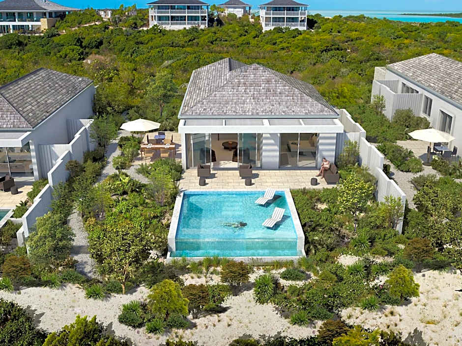 This one-bedroom villa is right on the beach and includes a private pool and an oversize terrace. This villa's interior details include living and dining rooms, an eat-in kitchen with island, spa-style bathroom with double vanities, soaking tub, walk-in shower, and an outside shower gardens. Includes flight from Providenciales International Airport to the property.
