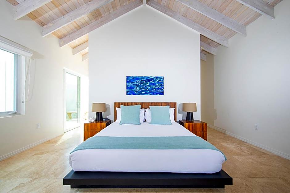 Our largest accommodations is located directly on the beach and features a private pool, living spaces, and a secluded garden patio. The open-floor plan features a fully equipped eat-in kitchen with island, four bathrooms, large soaking tub, separate water closet, an oversize walk-in shower, and outside shower garden. Take in sunset views from our oversize terraces featuring seating while you dine al fresco. Includes flight from Providenciales International Airport to the property.