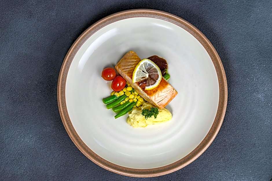 MoMo Cafe and Bar@Dago пропонують харчування на території у сімейній, сучасній атмосфері, подаючи страви американської, індонезійської та азійської кухні.