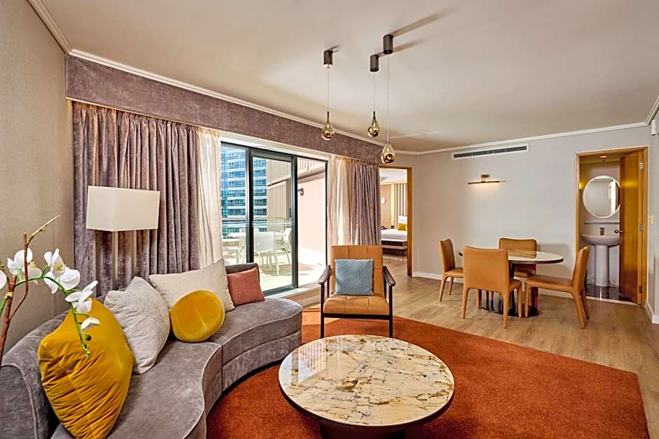 Grand Millennium має вражаючі 3,465 відгуків, що підкреслюють його фантастичні зручності та атмосферу. Чи ви тут для бізнесу, чи для відпочинку, ви можете займатися спортом у повністю обладнаному фітнес-центрі, розслабитися в сауні або насолодитися коктейлем на сонячній терасі. Для тих, хто потребує можливості працювати, бізнес-центр до ваших послуг, а приватна парковка забезпечує безпеку вашого автомобіля. Кожен номер продумано спроектований з шумоізоляцією для спокійного відпочинку, безкоштовним Wi-Fi та чудовими видами, щоб зробити ваше перебування максимально комфортним.