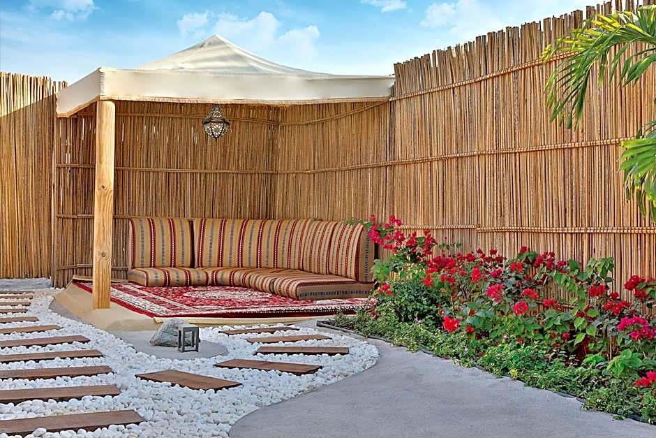Indulge in an extravagant desert oasis retreat at . Located just from the heart of Abu Dhabi, this 5-star gem offers an unforgettable experience. With a starting price of , this resort is the perfect blend of luxury and relaxation. The resort offers an array of amenities including a pet-friendly policy, a sparkling outdoor swimming pool, a kids' club, and a free fitness center.