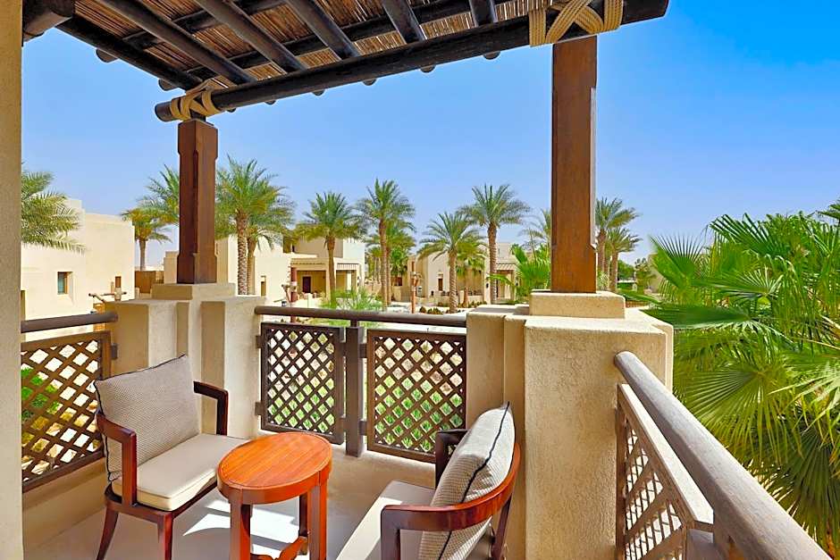 Featuring resort and courtyard views and decorates in neutral tones and arabesque elements the room includes a separate rain shower, free standing bath and luxury bathroom amenities.