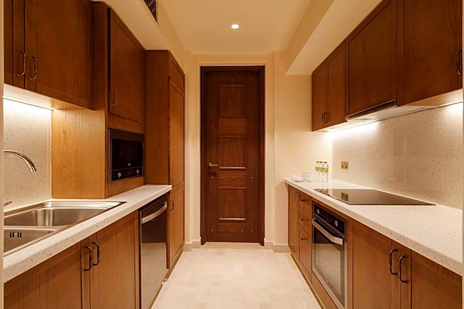 The hotel has several on-site restaurants, including Bait Al Hanine offering American, British, French, Middle Eastern, and seafood cuisines, Terra Secca specializing in Italian cuisine, and Al Mesayan serving Middle Eastern dishes. Other options include Panache offering international cuisine, Hayaakom with a range of international dishes, and Al Mabeet serving Middle Eastern and local cuisines.