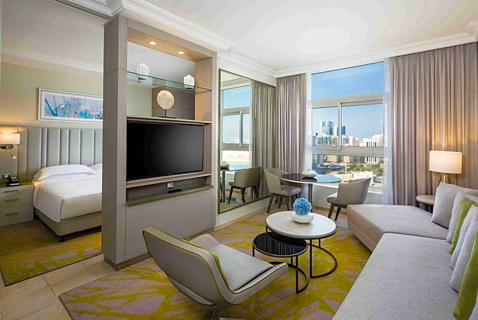 The One Bedroom Apartment suite at Beach Rotana – All Suites is designed to offer guests a spacious and luxurious accommodation option. Boasting a generous size of 592 square feet, this suite can comfortably accommodate up to three adults and one child, making it an ideal choice for families or small groups. With a cozy living space, well-equipped kitchenette, private bathroom, and a plush king-size bed, guests can enjoy a homely and relaxing environment throughout their stay. Whether guests seek a romantic getaway, a family vacation, or a leisure trip, the One Bedroom Apartment provides a perfect retreat for a memorable stay in Abu Dhabi.