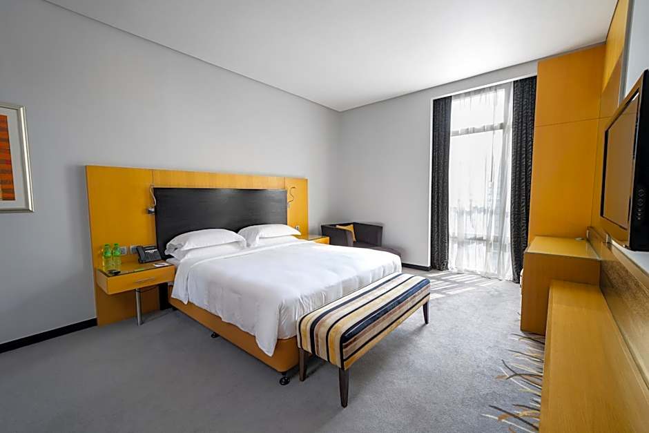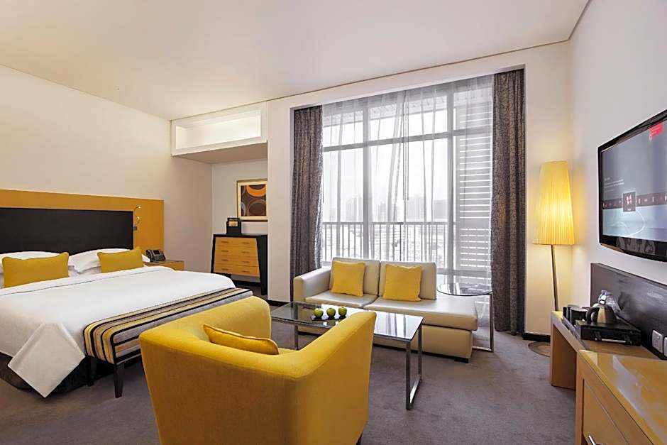 Featuring a panoramic view of Al Maryah Island, this premium room is decorated with modern furnishings. It includes a kitchenette with a washing machine/dryer and kitchenware.