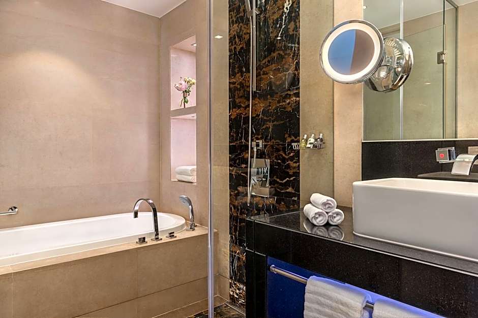 Offering free toiletries and bathrobes, this double room includes a private bathroom with a bath, a shower and a bidet. The spacious double room offers air conditioning, a mini-bar, a tea and coffee maker, a seating area, as well as a flat-screen TV with cable channels. The unit has 1 bed.
