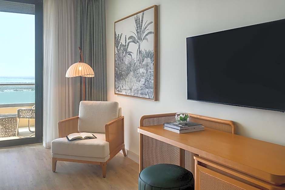 This is the ideal room for every kind of traveler – whether you’re on business, honeymoon or with the family. The Junior Suite is one large spacious room which features a luxurious king-size bed, a sofa which can easily be converted into a comfortable sofa bed, Nespresso machine and private balcony with sea view. Guests staying in this room can also get access to the Executive Lounge where complimentary snacks are served throughout the day and beverages between 18:00 and 20:00.