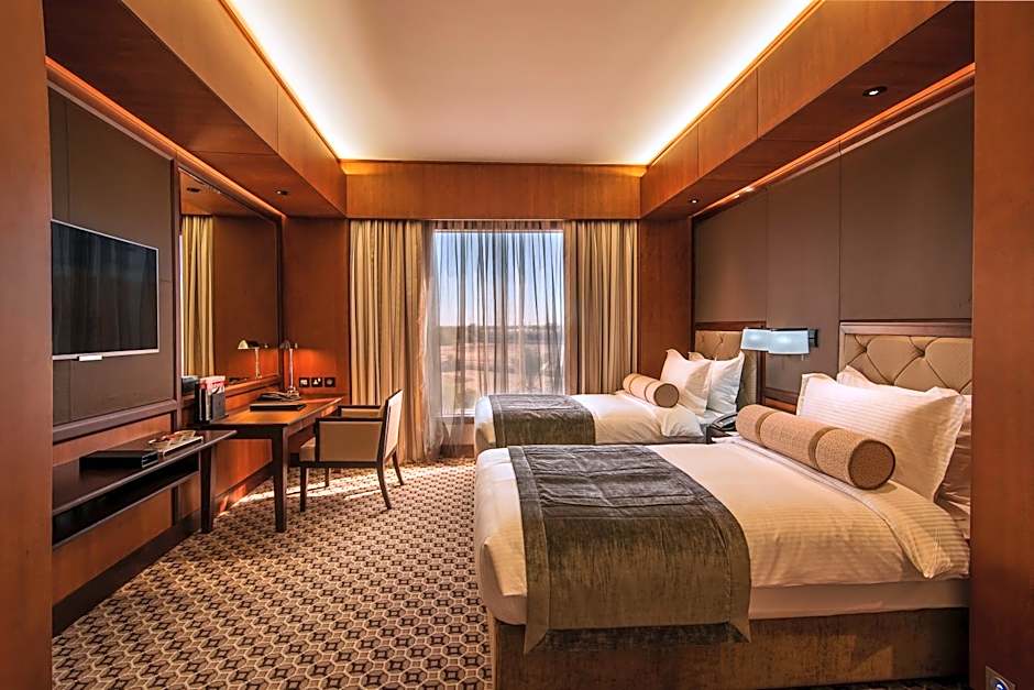 The hotel offers an on-site restaurant called Nara Restaurant, which features a family-friendly ambiance with a mix of traditional and modern elements. The restaurant serves a range of cuisines including Indian, Middle Eastern, local, Asian, international, European, and BBQ.