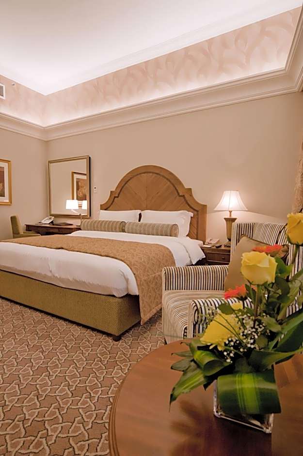 This suite includes a separate living room with panoramic views of the city. Features a seating area with a flat-screen TV.