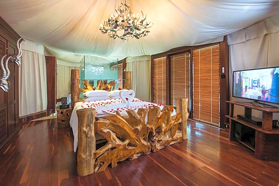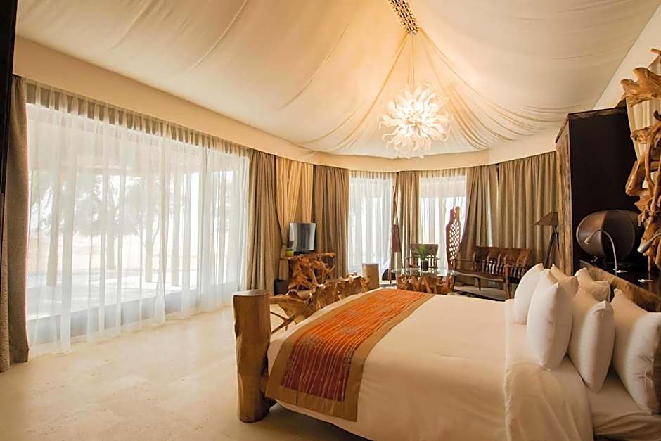 This air-conditioned villa is inspired by Bedouin luxury tent. It offers a terrace with a view and free WiFi. It has a flat-screen TV, a seating area and a mini-bar. It also includes a safety deposit box and a tea/coffee maker. The bathroom comes with a bathtub a hairdryer and a bathrobe. Guests can control air-conditioner and the lights via the in-villa Apple IPad.
