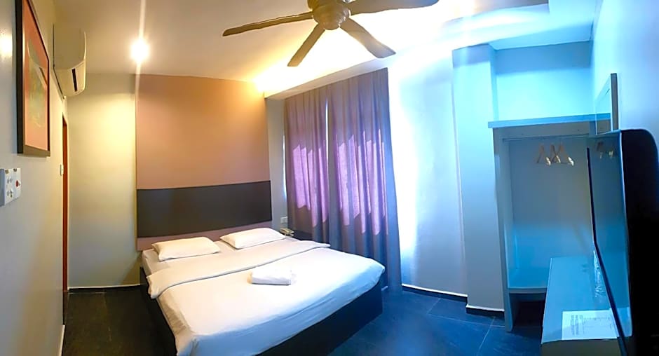 The hotel offers a Suite with a size of 775 sqft and no smoking allowed, accommodating 3 adults and 2 children with 1 Queen size bed and 1 Sofa Bed. The Deluxe Double Room, with a size of 388 sqft, also prohibits smoking, and accommodates 3 adults and 2 children with 1 Queen size bed and 2 Twin beds.