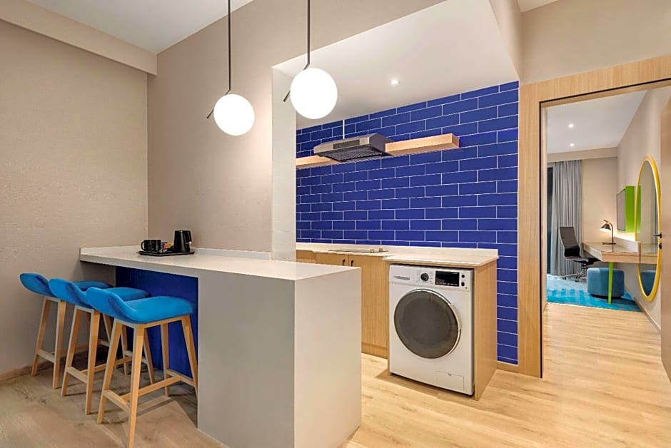 As the sun sets over the horizon, it’s time to unwind at La Quinta by Wyndham Dubai Jumeirah! Take a dip in the stunning rooftop pool reserved just for adults, where you can sip on refreshing cocktails while enjoying panoramic views of the bustling city below. Whether you're looking for a romantic evening or simply some time to yourself, this serene escape is the perfect way to relax and recharge after a day of sightseeing. And for those who want a slice of family-friendly fun, the outdoor swimming pool area also features a dedicated kids’ pool for the little ones to splash around in!