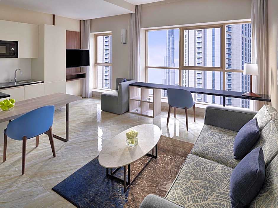 Mövenpick Hotel Apartments Downtown Dubai has a starting price of $139 for accommodations. Do remember that actual rates might deviate based on the room and date. Insert your dates for a detailed price view.