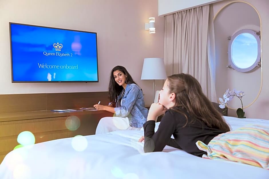 Queen Elizabeth 2 Hotel is a 4-star hotel in Dubai, United Arab Emirates, located at Mina Rashid Bur Dubai. It sits about 12,9 миль from the city center. Minimum price starts from $47 per night, and the property has 6547 reviews.
