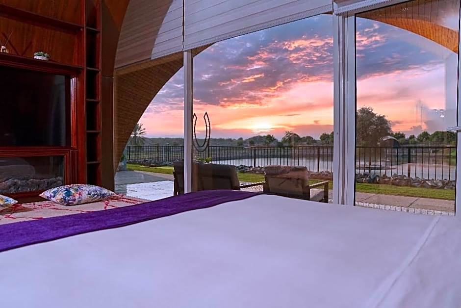 Nestled on Al Hadeethah Road in Ras Al Khaimah, Nirvana Retreat offers a scenic launchpad for an exploration-filled escape. Water views of the lake, mountain, river, and garden spill across terraces, balconies, and patios, while the grounds invite a stroll through a garden or a pause in the on-site playground. Beach umbrellas and chairs dot the waterfront, and pets are welcome with a charge, adding a friendly touch for travelers with four-legged companions. On-site parking and complimentary Wifi keep logistics simple.
