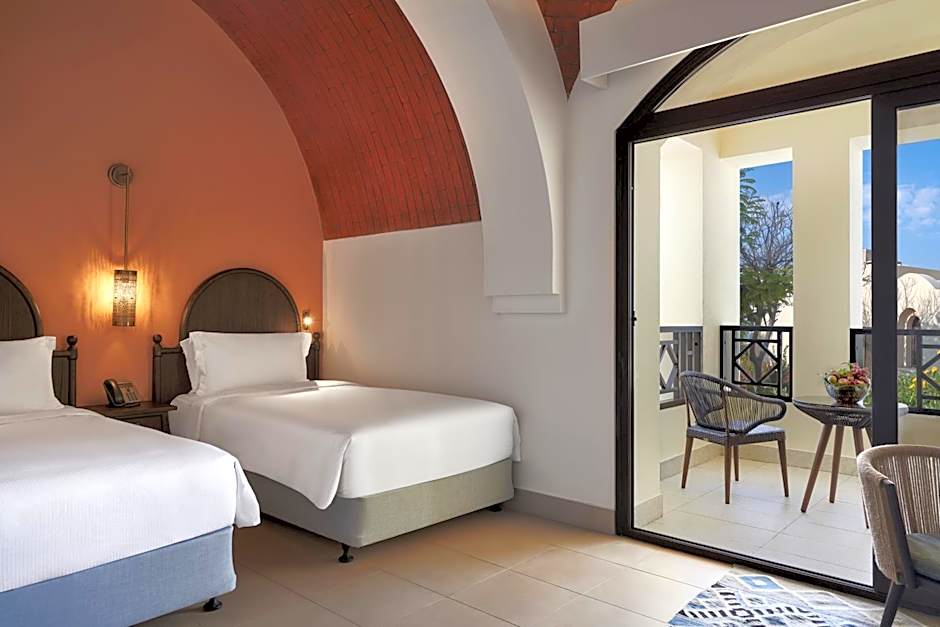 Ideally located on the left side of the resort in clusters, with village view (no pool or sea view) all the Classic rooms are cozy, designed with a distinctive Nubian touch. Twin bedded, the rooms feature a sofa under a high arched ceiling and are benefiting of a private balcony or terrace to enjoy a quiet moment. There is no capacity for an extra bed in this room category.