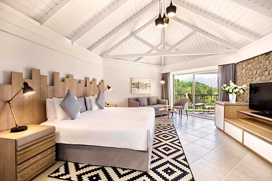 Located in a standalone location, this 120 sqm villa includes 3 separate bedrooms, a private garden area with sun loungers, a spa bath and dining area. Decorated in warm colors, it features a balcony or terrace overlooking the Hajar mountains. It offers a mini-bar, an electric kettle and safety deposit box. Both private bathrooms in the villa feature a walk-in shower.